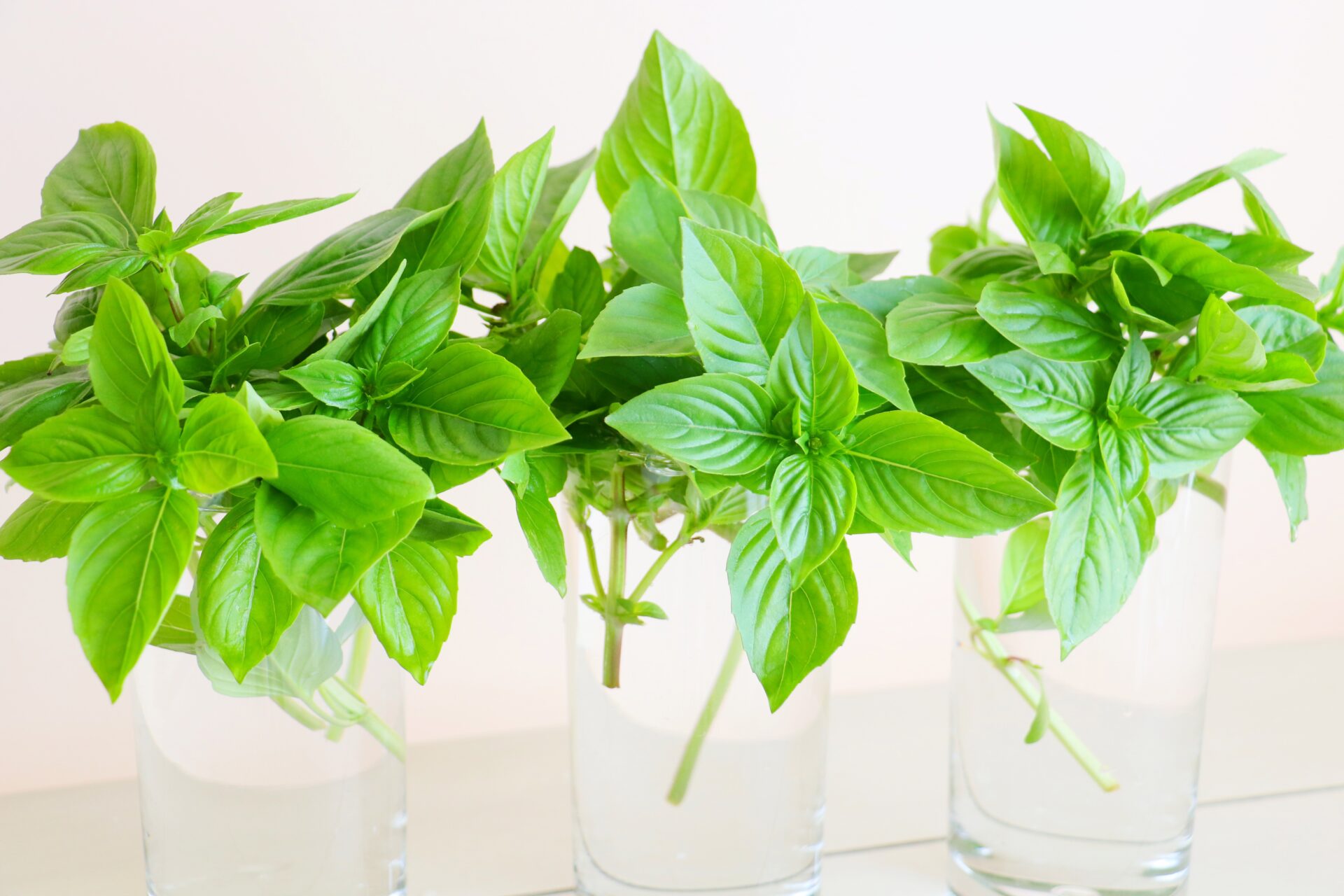 Cut the basil into 4 or 5 inches long. In a glass of water, transfer the basil inside. Place it by the window, where it will receive sunlight, and change the water daily. Basil loves warm weather, so anything between 75 to 90 degrees F is good.