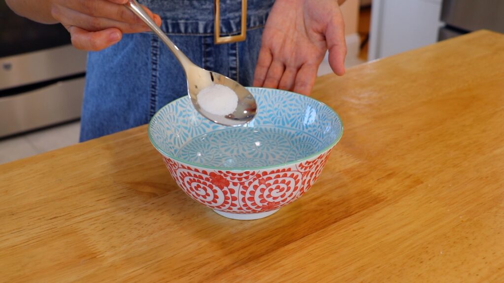 In a bowl, combine the water with sugar or vinegar.