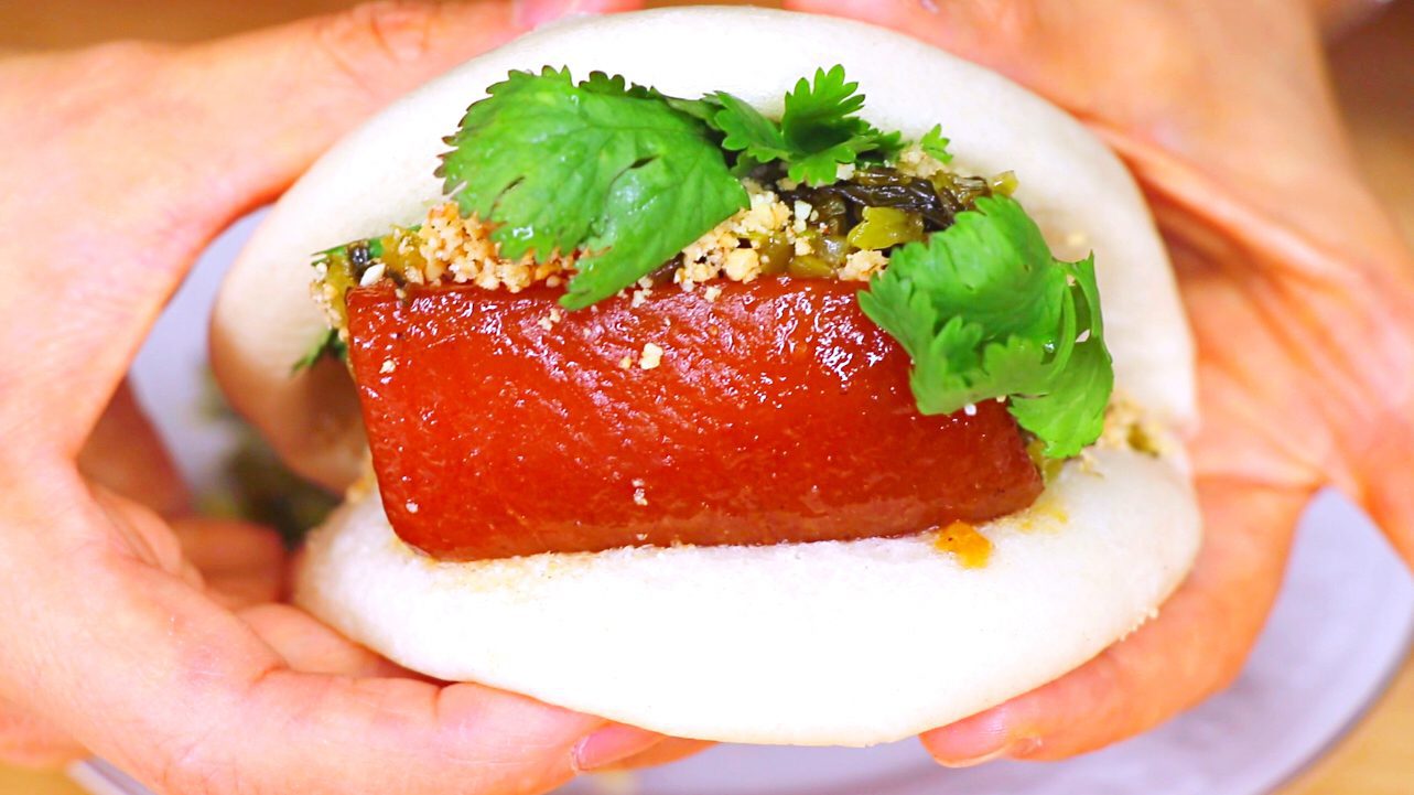 6. Assemble the Taiwanese Pork Belly Buns: